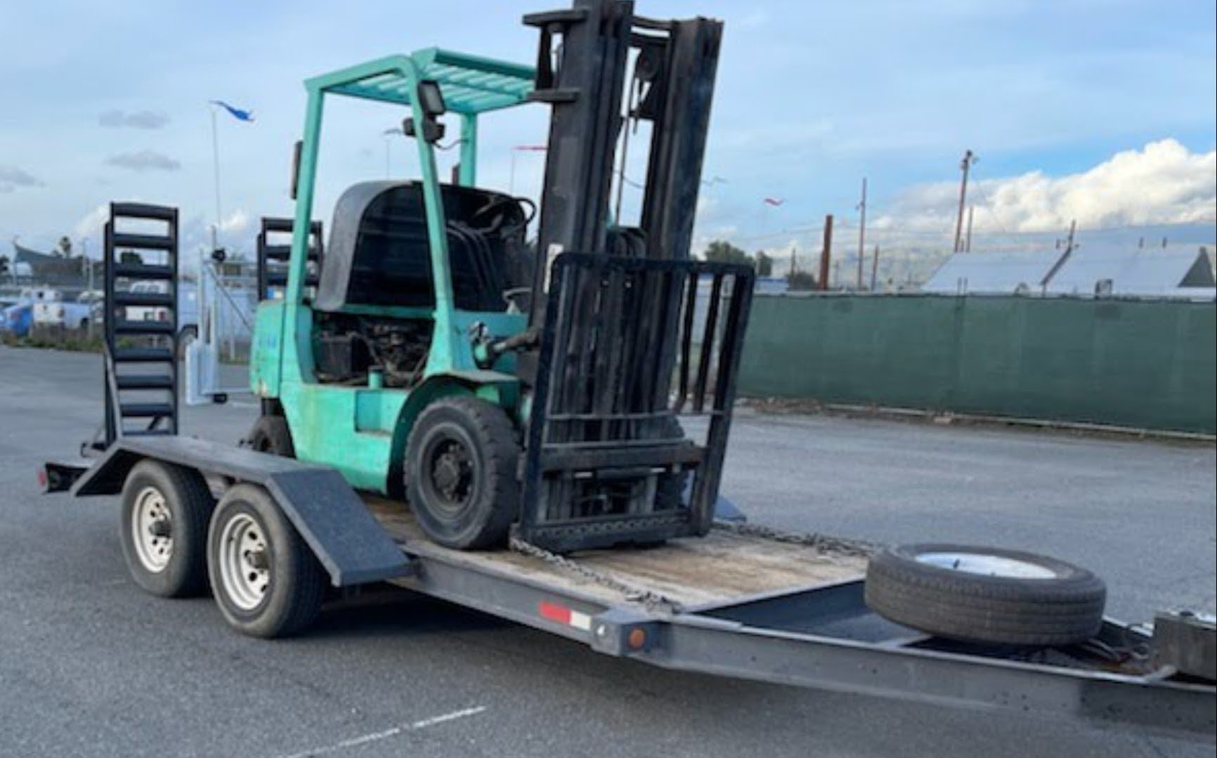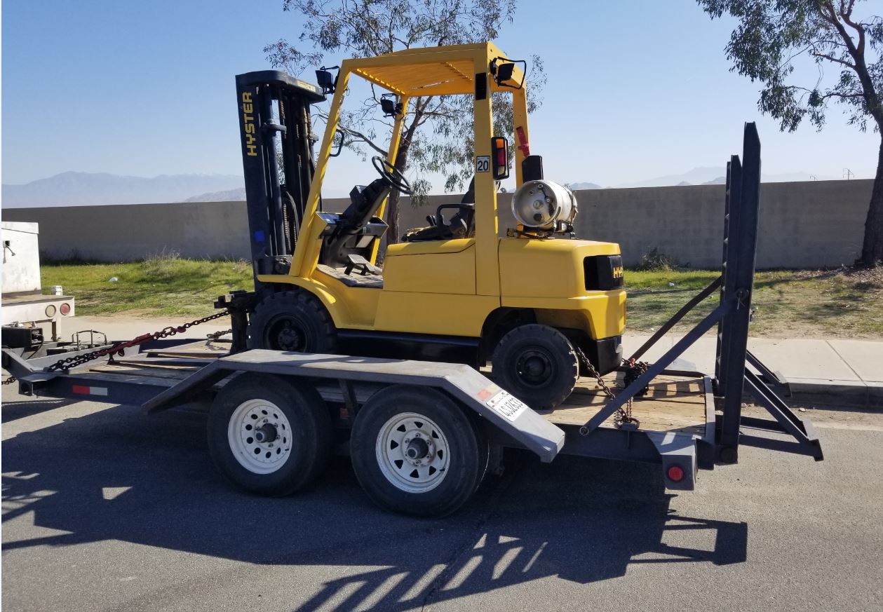 double axle with fold down ramps. Trailer is located in Jurupa Valley / Riverside.