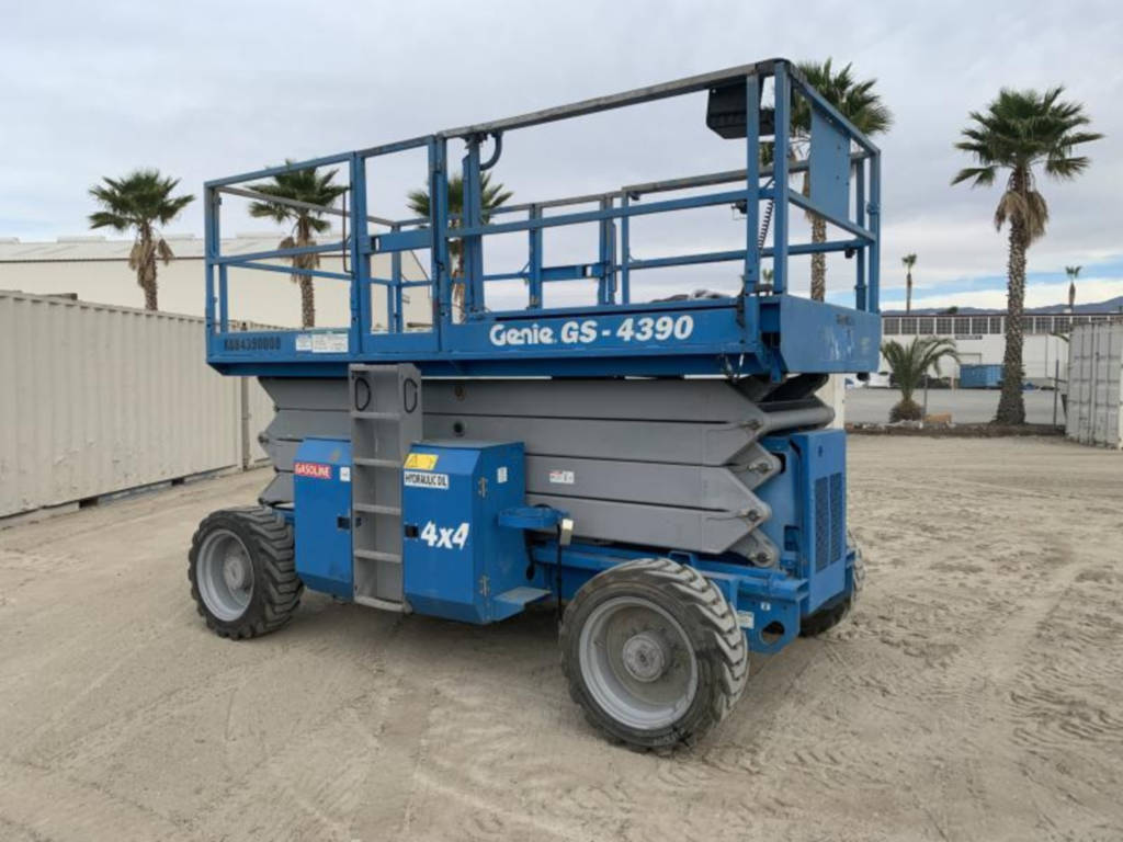2008 GENIE GS4390 ROUGH TERRAIN SCISSORLIFT, dual fuel, 43′ lift, 4×4, extendable platform, foam filled tires, 4797 hours. s/n:GS9008-46317